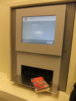 | 図書館で入り口近くにある返却機 |